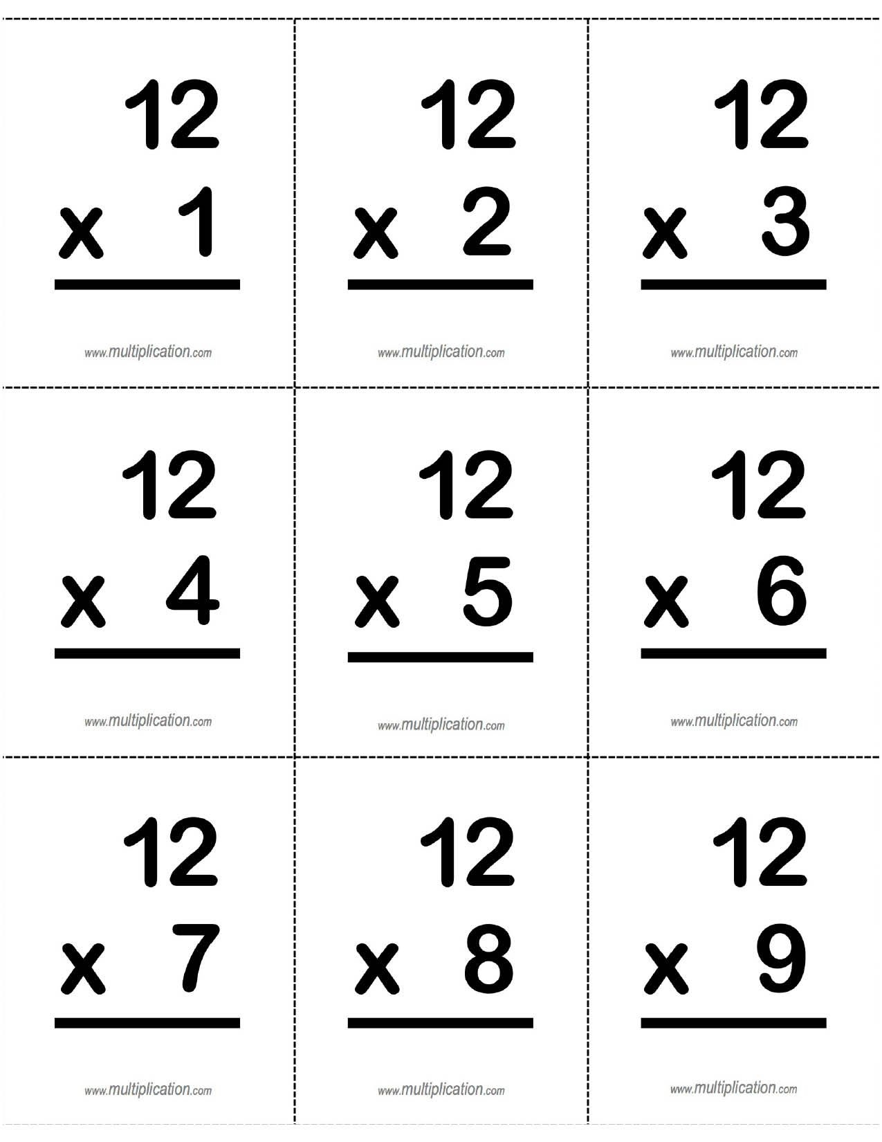 12 Multiplication Flash Cards Printable