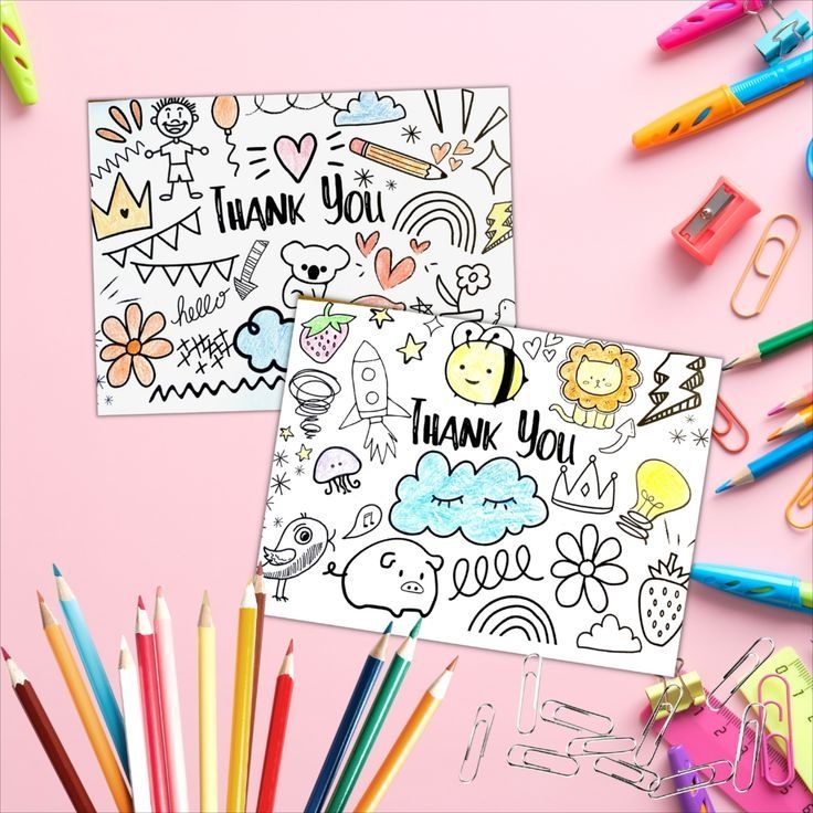 Thank You Colouring Cards Printable Two Designs Kids Thank You Cards
