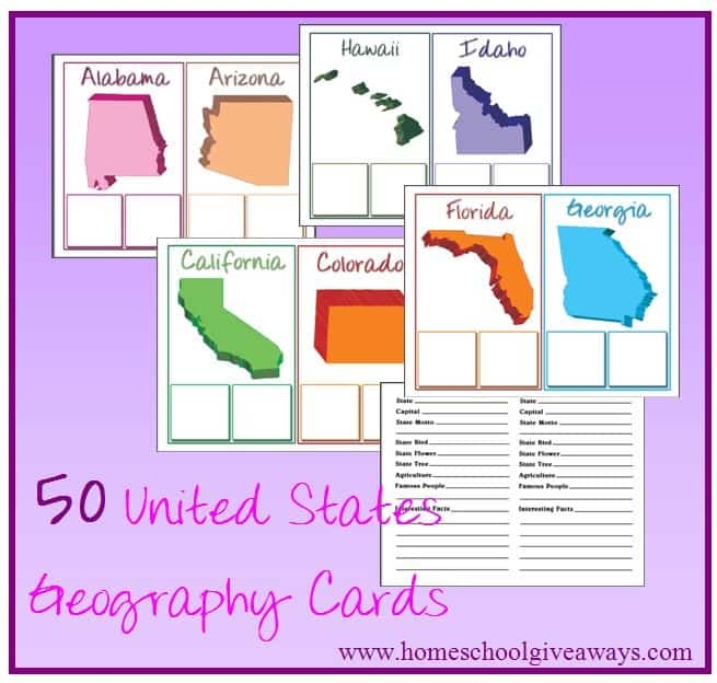 FREE Printable U S States Geography Cards Homeschool Giveaways