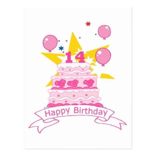 14 Year Old Birthday Cake Postcard Zazzle