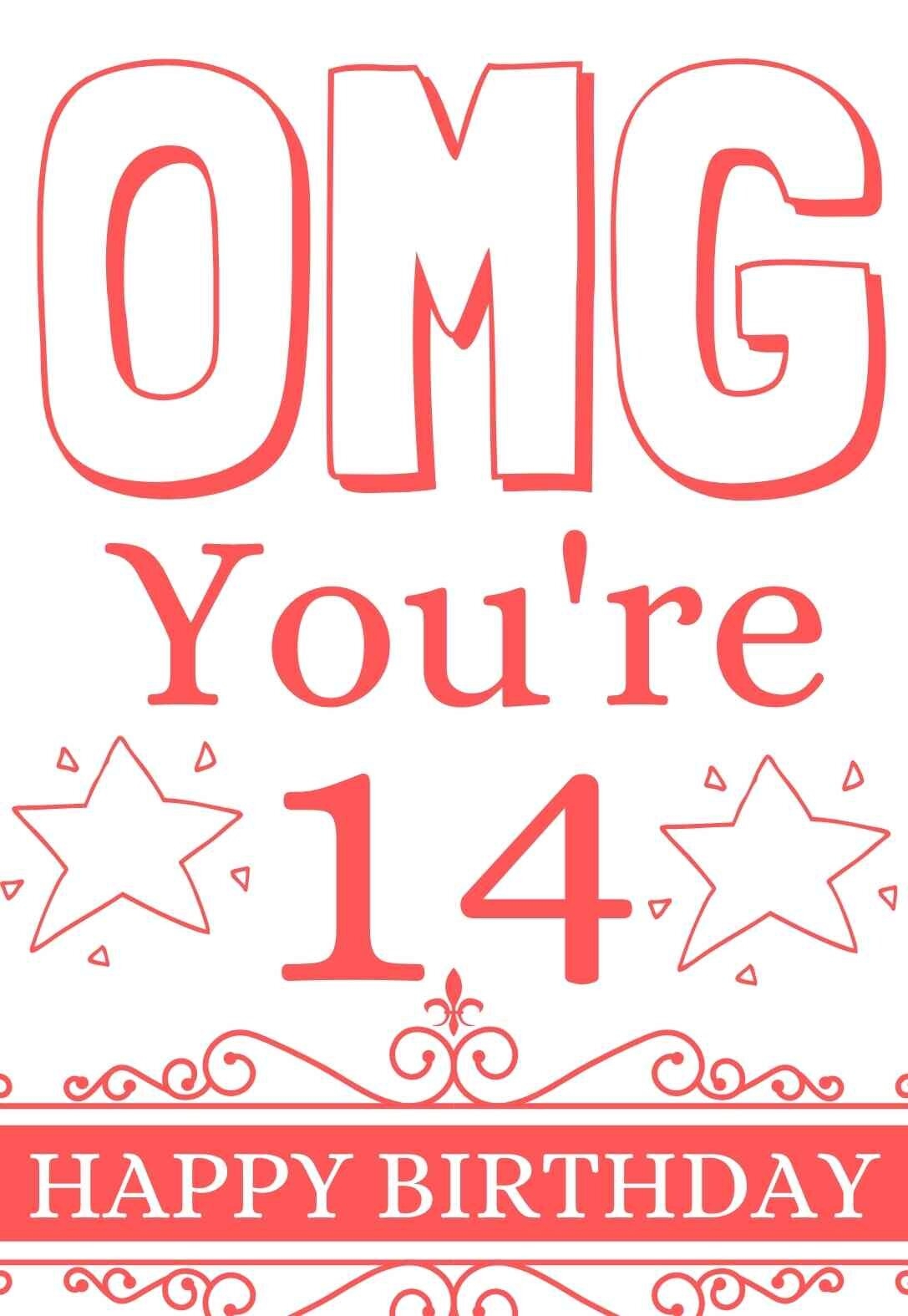 14 Year Old Birthday Card Printable