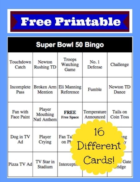So, whether you’re hosting a large party or just watching the game with a few friends, be sure to download and print out our 2016 Super Bowl bingo cards for a memorable and entertaining game day experience. Get ready to shout “Bingo!” and celebrate the Super Bowl in style.