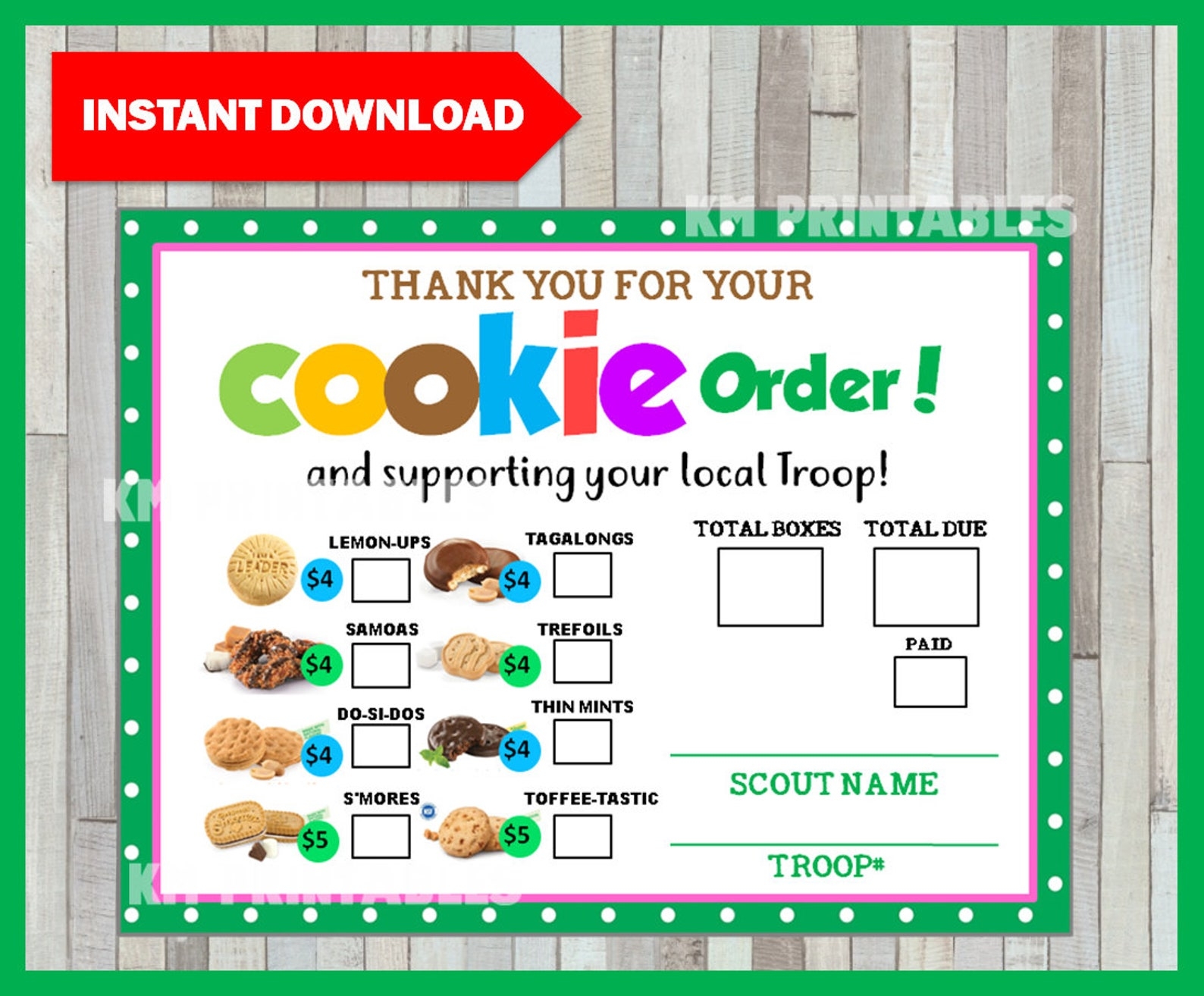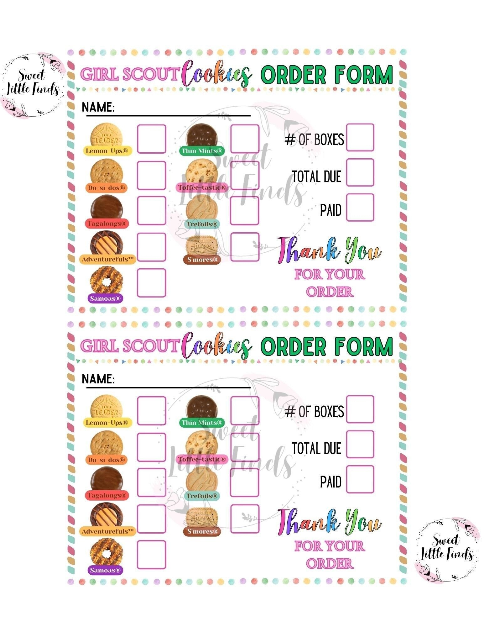 Girl Scout Cookies LBB 2024 Printable Order Form Girl Scout Etsy In