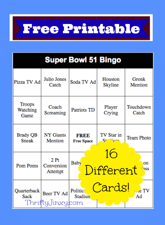 Super Bowl Bingo Cards FREE Printable Thrifty Jinxy