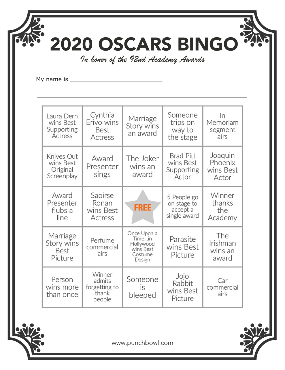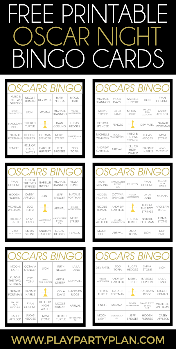 Make sure to check out our website for some free printable Oscar bingo cards to use at your viewing party. Happy watching and may the best film win!