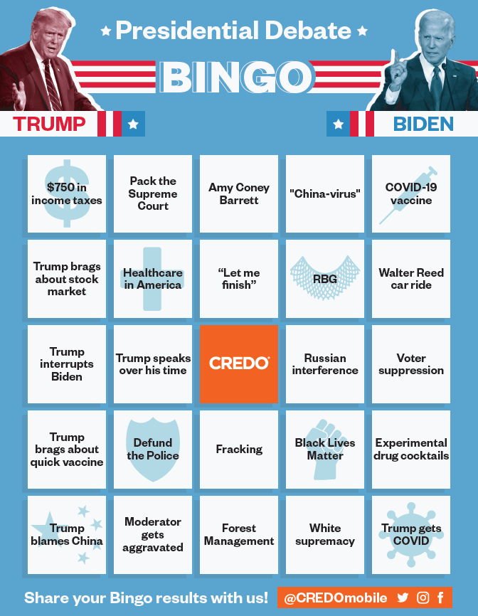 Download Your Biden Trump Debate Bingo Cards Here CREDO Mobile Blog