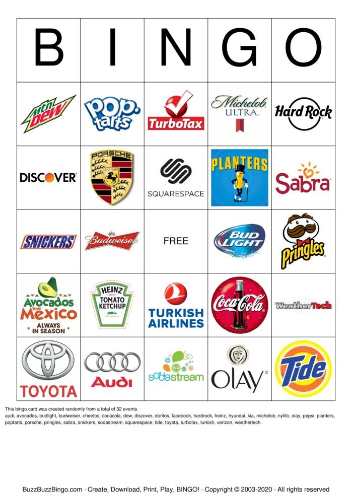 Download and Print 2020 superbowl commercial bingo cards printable Listed below