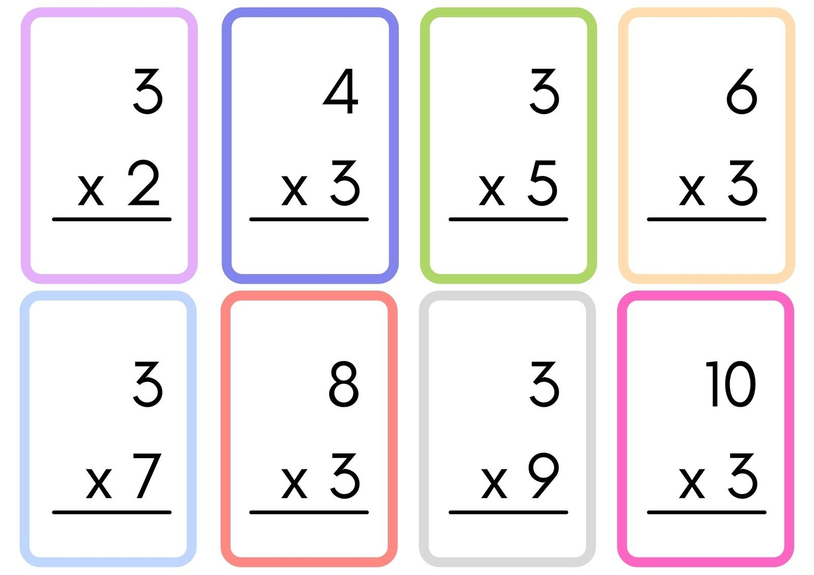 Multiplication is an essential skill for students to master in their early years of education. It forms the foundation for many mathematical concepts and is used in everyday life. One fun and effective way to practice multiplication skills is by using flash cards. Here, we provide you with three printable multiplication flash cards that you can use to help your child or students improve their multiplication abilities.
