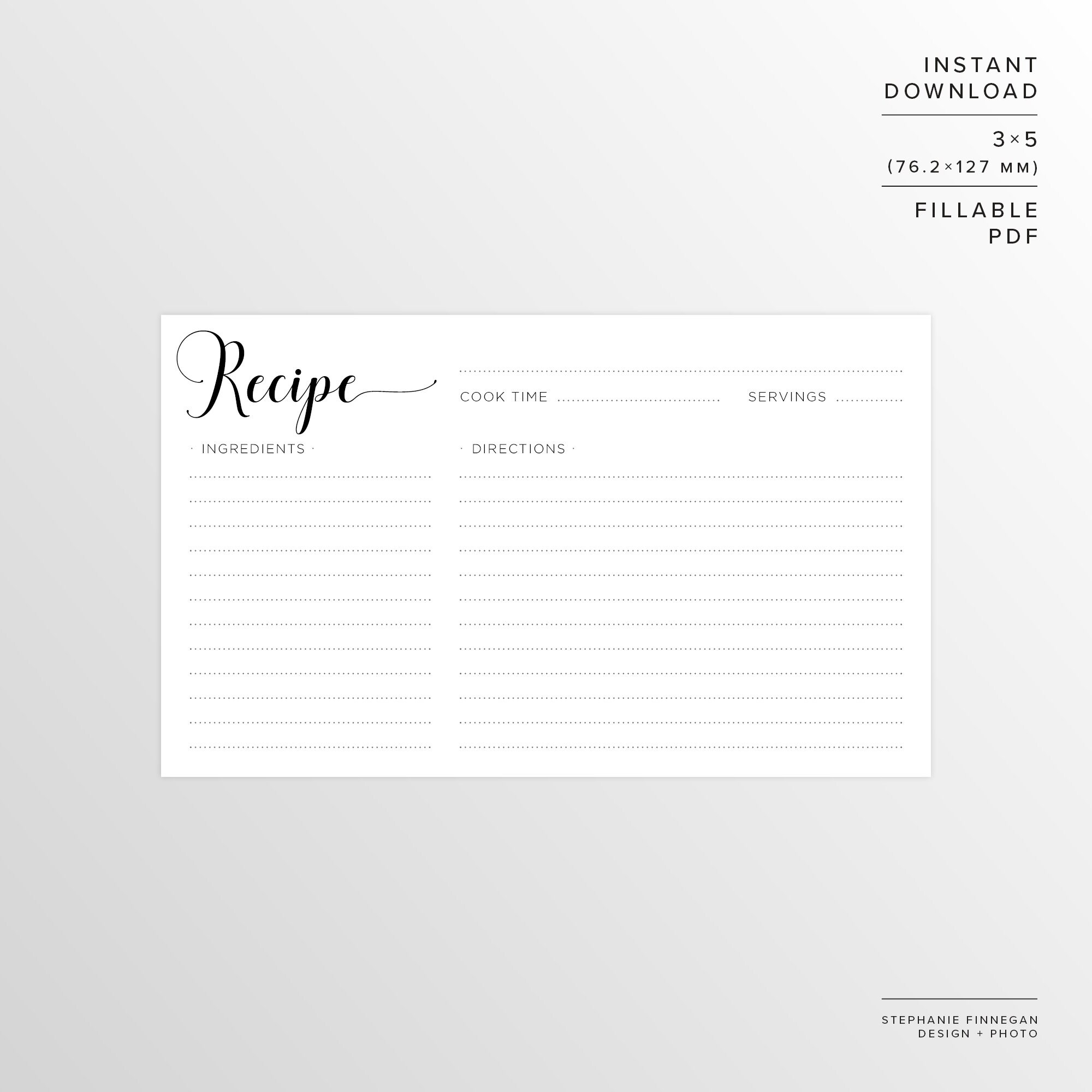 3x5 Recipe Card Printable Recipe Printable Card Recipe Printable
