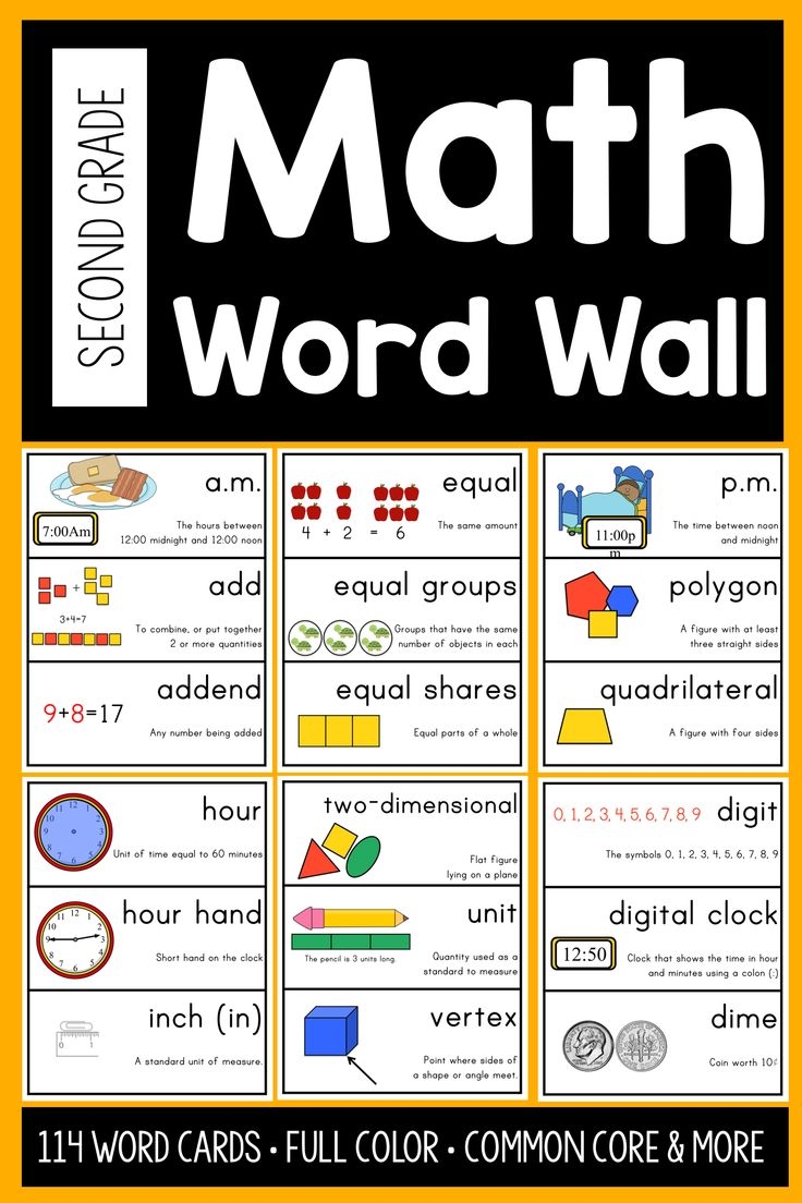 2nd Grade Math Word Wall Vocabulary Cards For The Whole Year Math