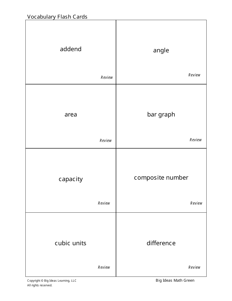 Download and Print 3rd grade math vocabulary flash cards printable Listed below