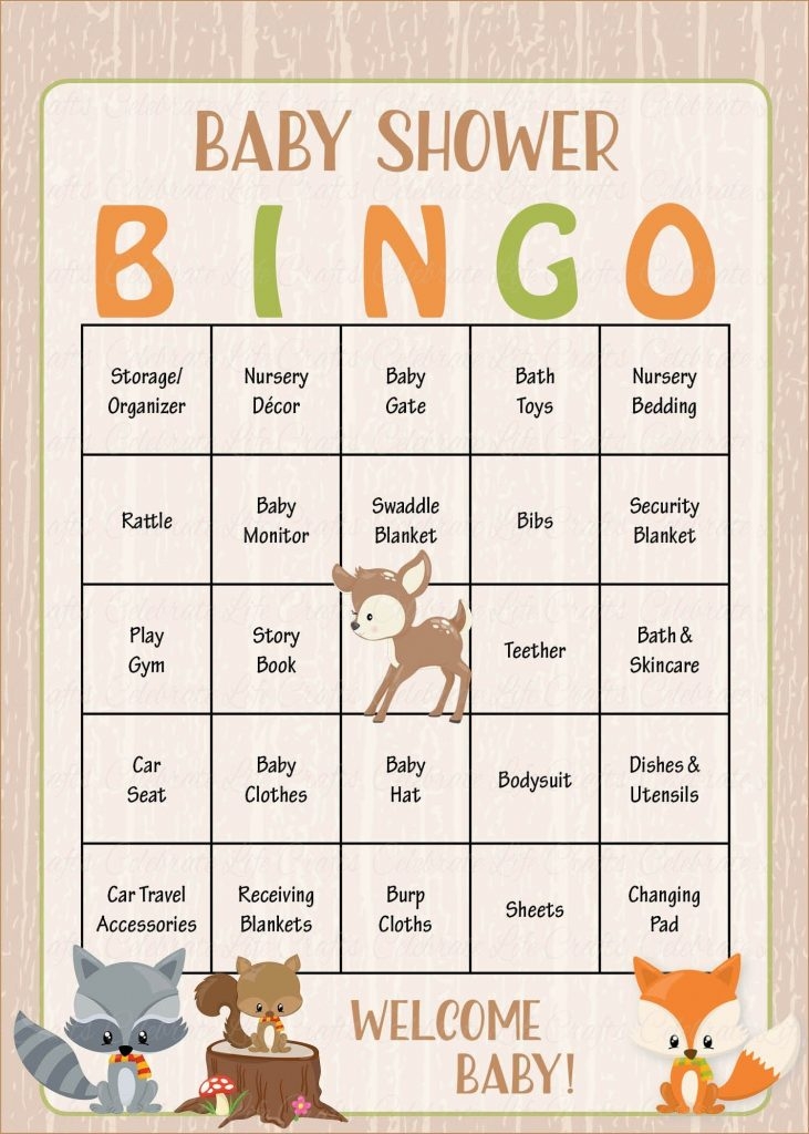 Woodland Baby Bingo Cards Printable Download Prefilled Printable