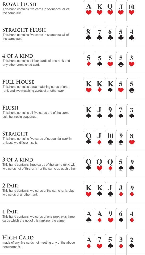 In conclusion, understanding the different types of 5 card poker hands is essential for any player looking to improve their game. Having a printable reference of the hand rankings can be a useful tool for players to have on hand while playing. By studying and memorizing the different hands, players can increase their chances of success and become more skilled at the game of poker.