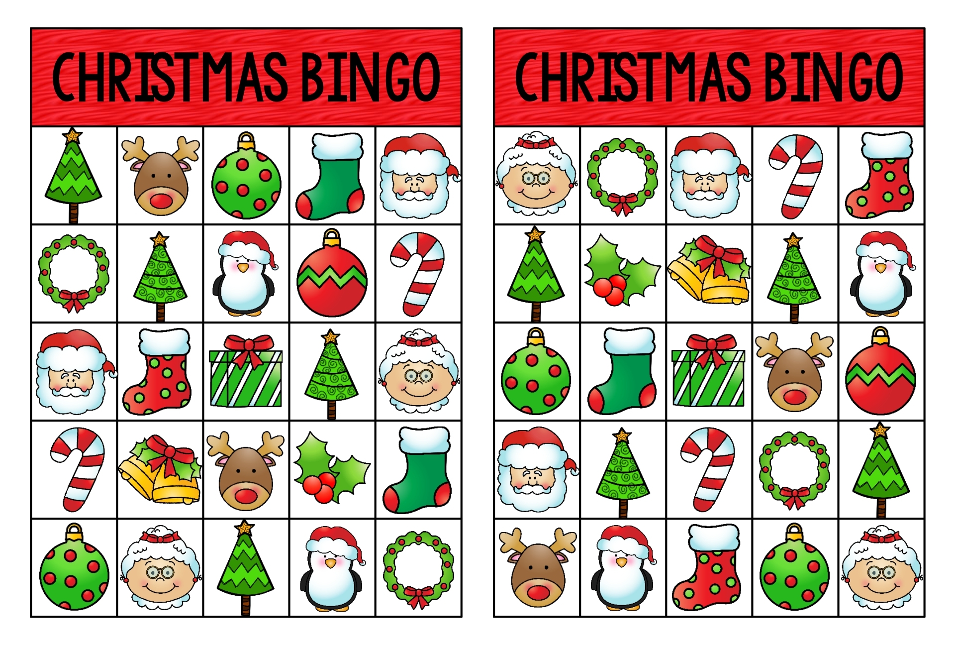 With 50 unique and festive designs, these printable Christmas Bingo cards are perfect for players of all ages. From jolly Santas and reindeer to colorful ornaments and snowflakes, each card is filled with holiday cheer. Simply download and print as many cards as you need for your game, and get ready to have a holly jolly time!