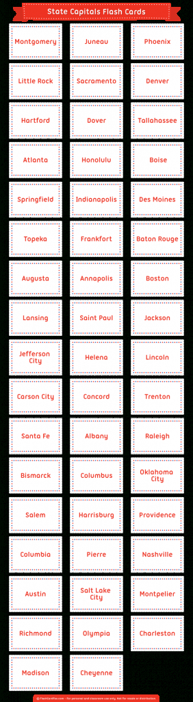 50 States Capitals Flash Cards Printable