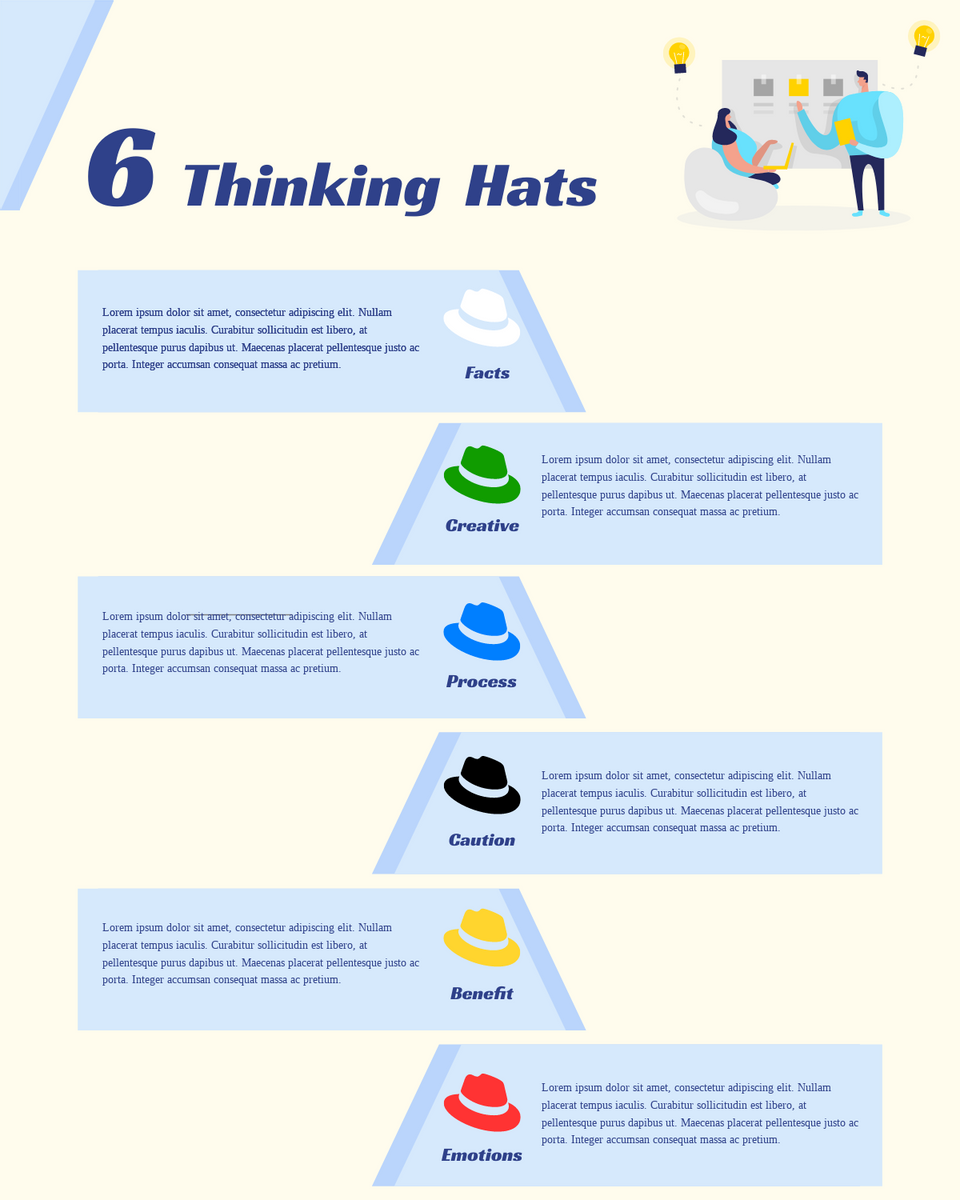 Overall, incorporating 6 thinking hats printable cards into your daily routines can lead to more effective decision-making, improved communication, and enhanced creativity. So why not give them a try and see the positive impact they can have on your problem-solving abilities?
