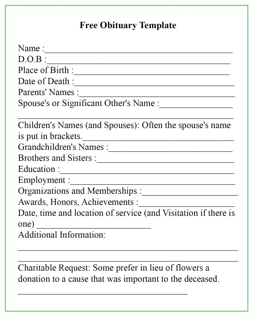 Free Printable Obituary Template Online Printable Templates