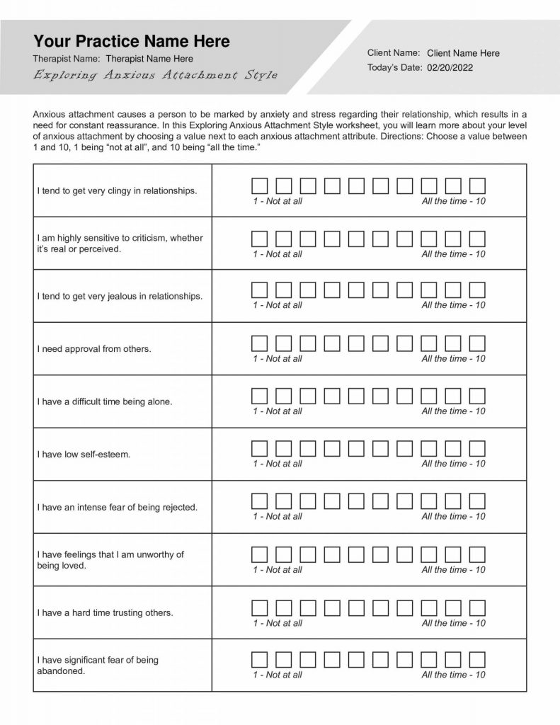 Anxiety is a common mental health condition that can affect anyone at any age. It is important to address and manage anxiety in order to lead a fulfilling life. One effective way to do this is through the use of anxiety worksheets. These worksheets can help individuals identify their anxiety triggers, develop coping mechanisms, and track their progress over time. Fortunately, there are many free printable anxiety worksheets available in PDF format that can be easily accessed and utilized.