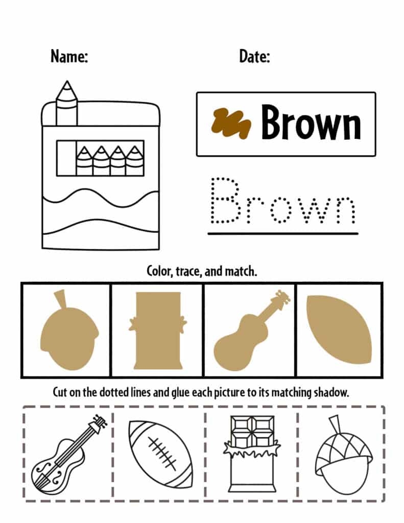 free printable color brown worksheet