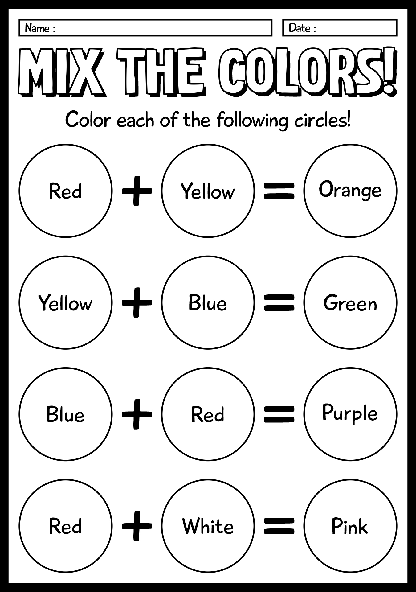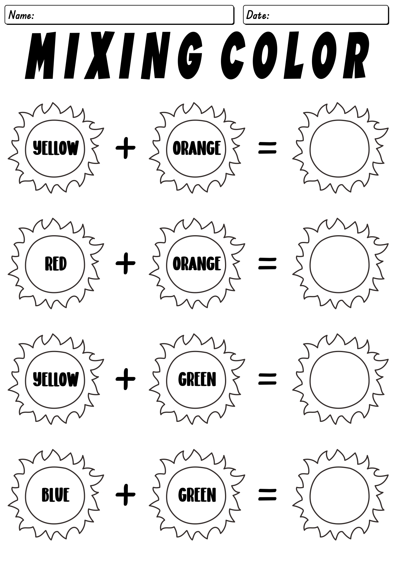 Free Printable Color Mixing Worksheet PDF