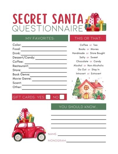 Free Printable Secret Santa Worksheets