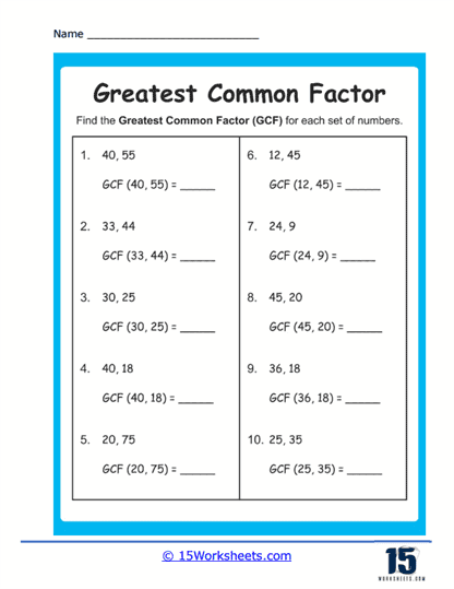 When working through a GCF worksheet, you’ll encounter a variety of problems that challenge your ability to find the greatest common factor of numbers. These problems may involve simple pairs of numbers or more complex sets of numbers that require a bit more thought. By practicing with these worksheets, you’ll improve your GCF skills and gain confidence in your ability to tackle similar problems in the future.