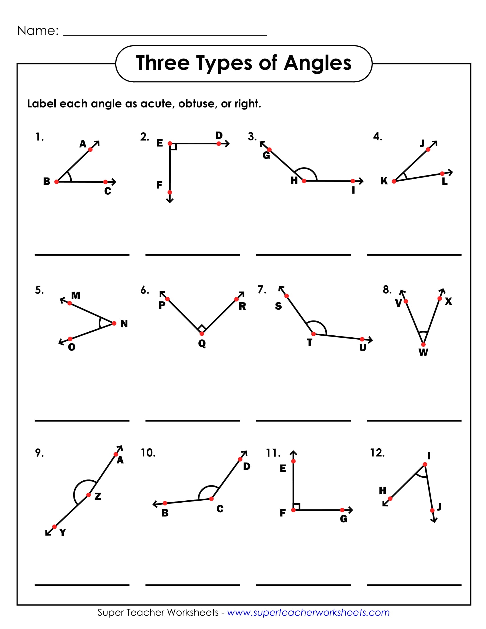 Geometry Angles Worksheet