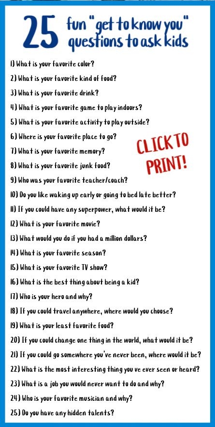 Sample Get to Know You Questions: