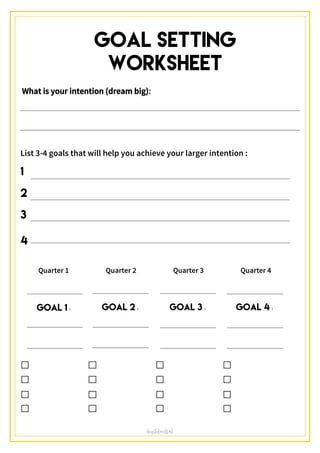 5. Motivation: Seeing your goals written down on a worksheet and monitoring your progress can boost your motivation and confidence. It reminds you of your purpose, keeps you inspired, and encourages you to keep pushing forward, even when faced with challenges.
