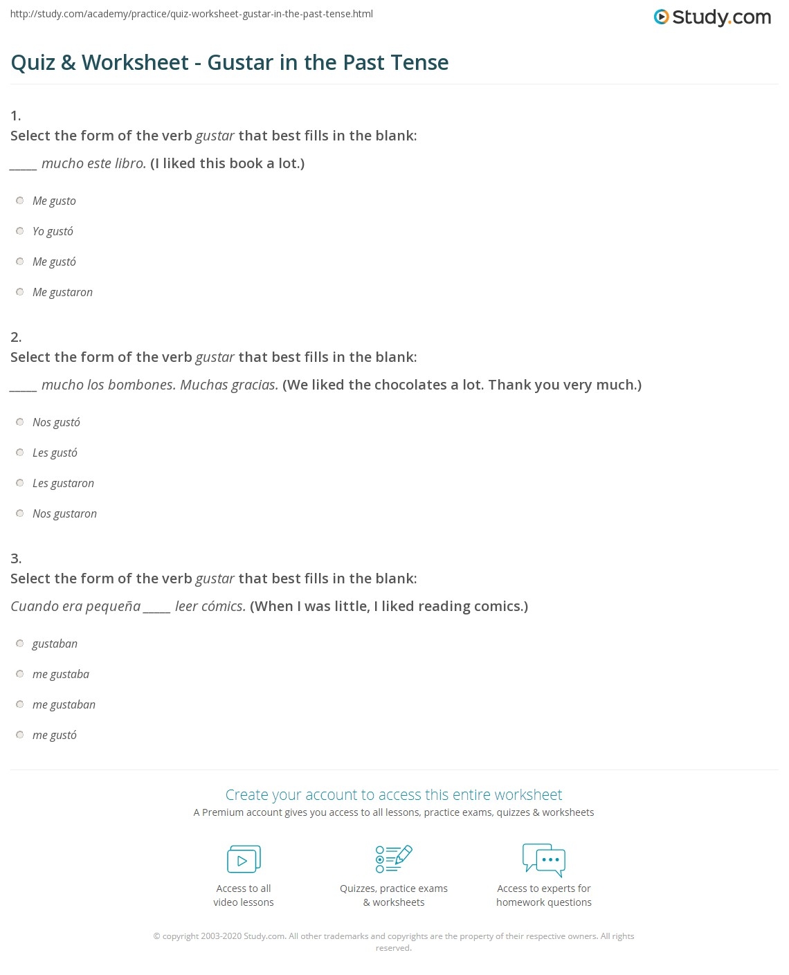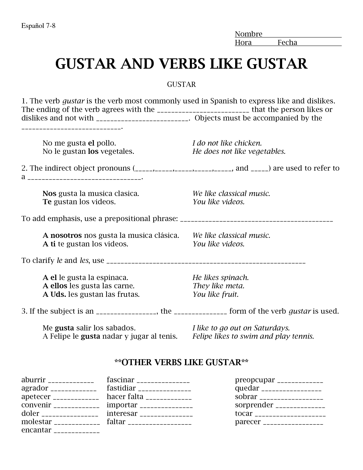 Gramatica C: The Verb Gustar Worksheet Answers