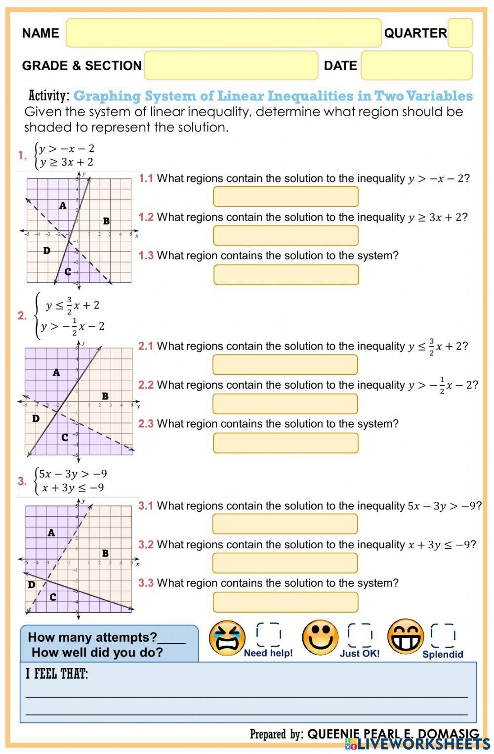 Graphing System Of Linear Inequalities Worksheet
