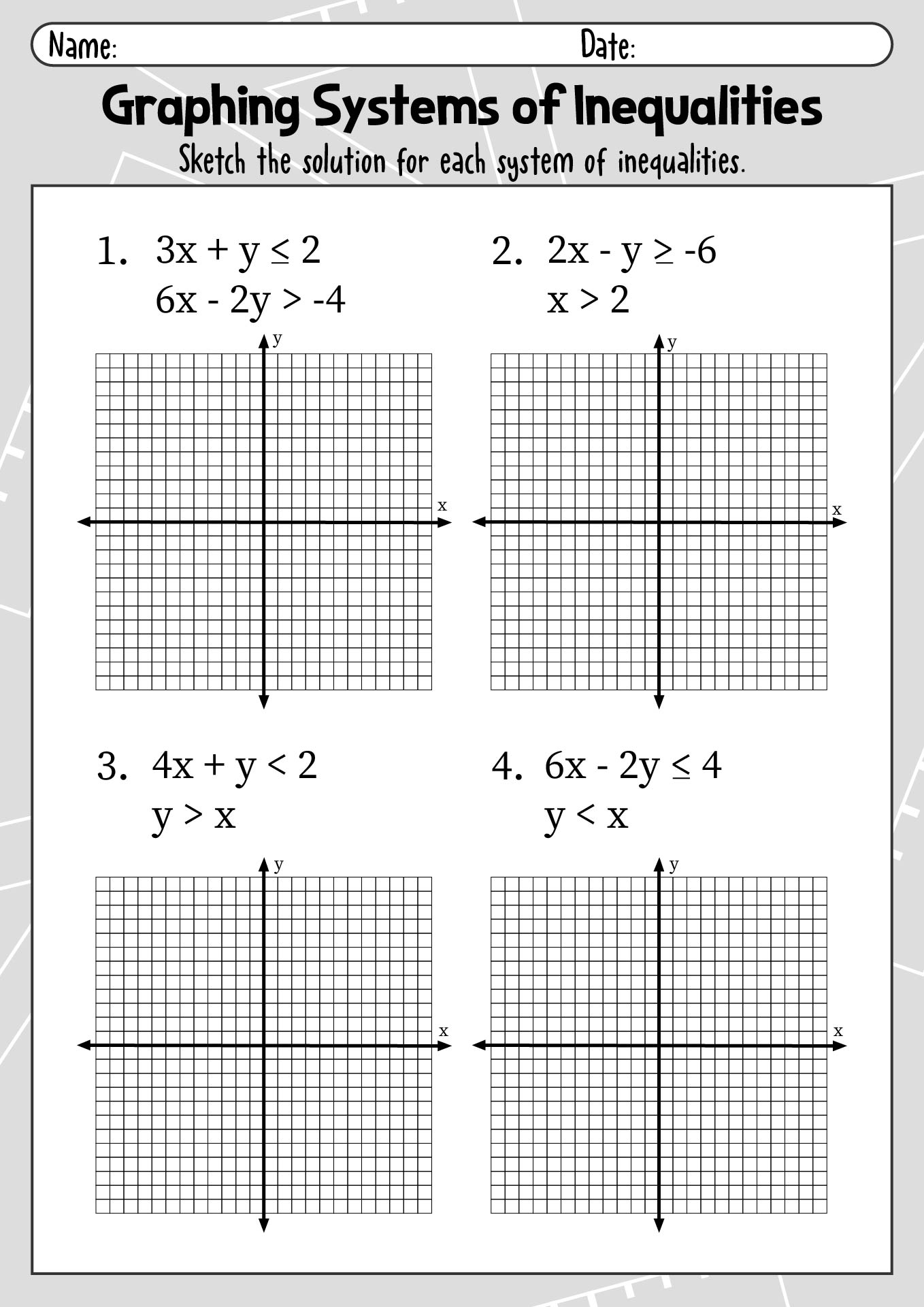 graphing a system of inequalities worksheet