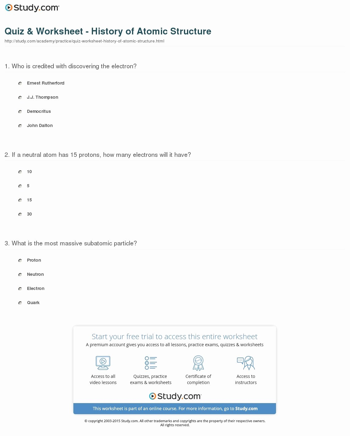 Free Printable Atomic Structure Worksheets Worksheets Library