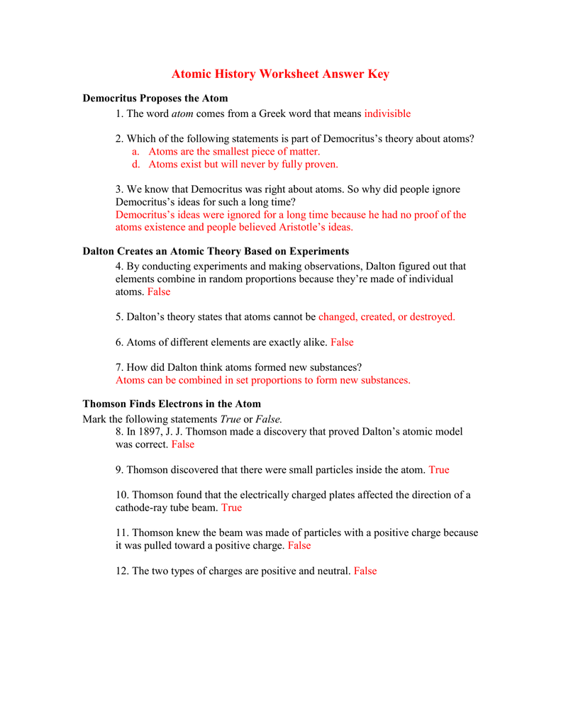 Download and Print history of the atom worksheet Listed below