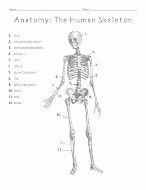 Human Skeleton Worksheet to Label