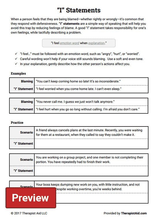 I Statements Worksheets