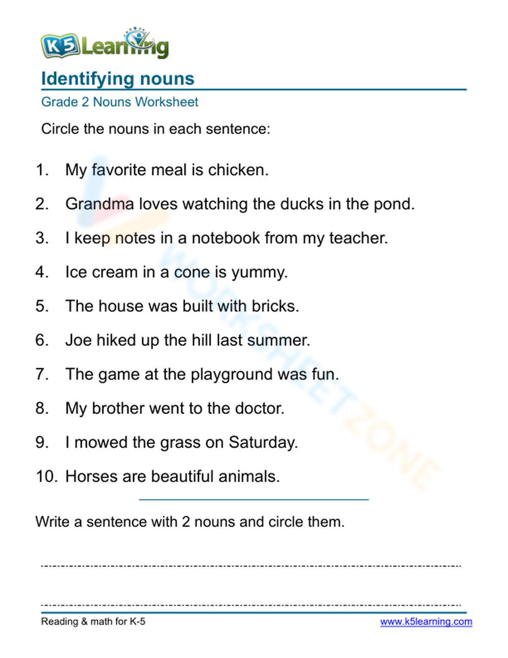 identifying nouns worksheet