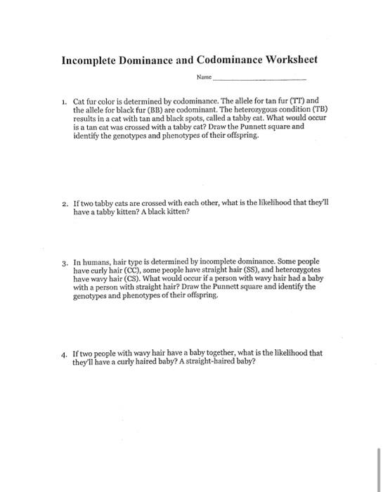 One way to reinforce these concepts is through a worksheet that challenges students to apply their knowledge of incomplete dominance and codominance. The worksheet can include scenarios where students have to determine the phenotypes and genotypes of offspring based on the parents’ traits. This hands-on approach helps students grasp the complexities of genetic inheritance and how different alleles interact with each other.