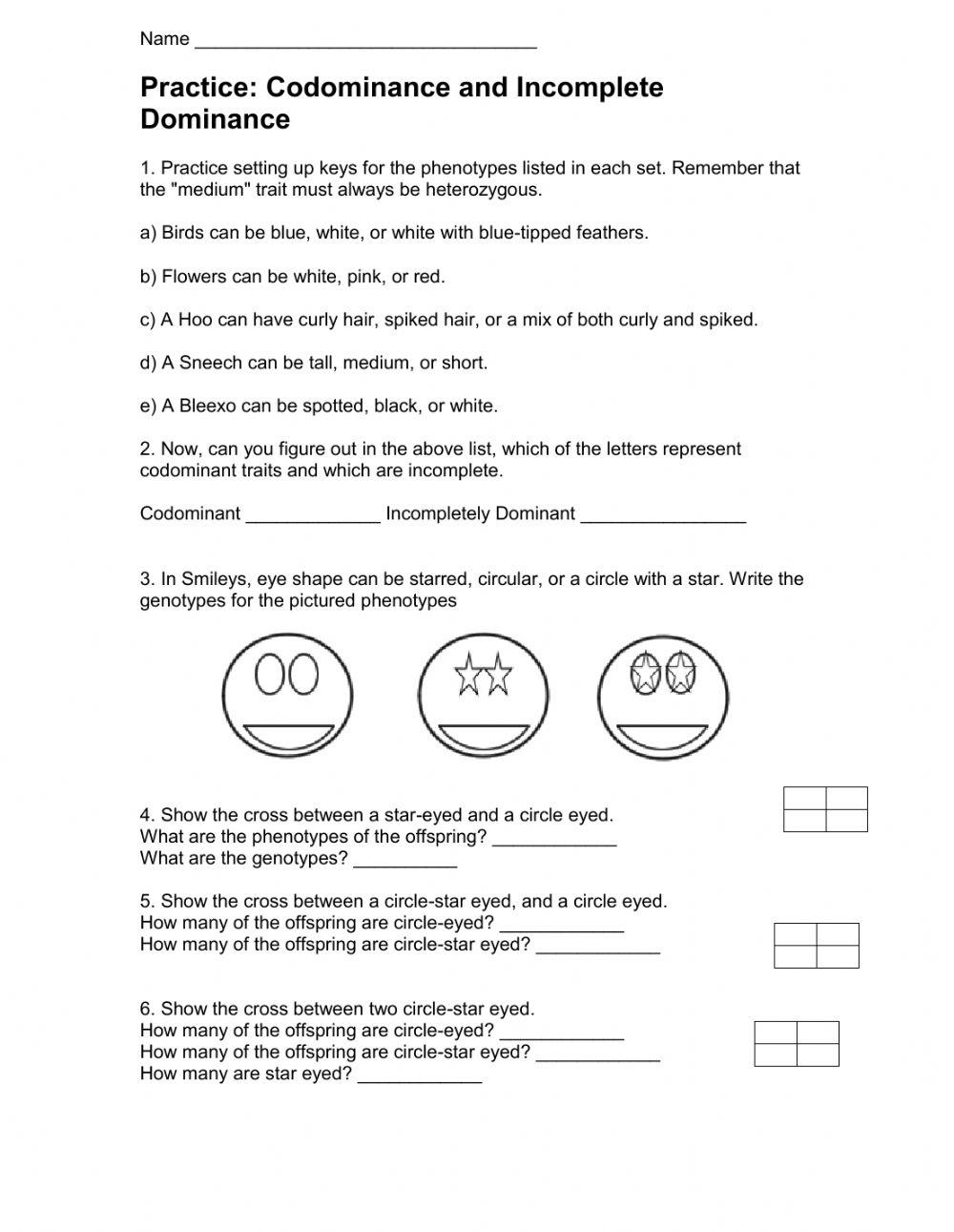 Incomplete And Codominance Doodle Diagrams Worksheets Library
