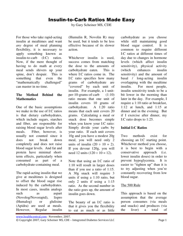 One way to determine your insulin to-carb ratio is by using a worksheet. This worksheet typically includes columns for recording the amount of carbohydrates consumed, the corresponding insulin dose, and blood sugar levels before and after meals. By tracking this information over time, individuals can identify patterns and make adjustments to their insulin dosage as needed.