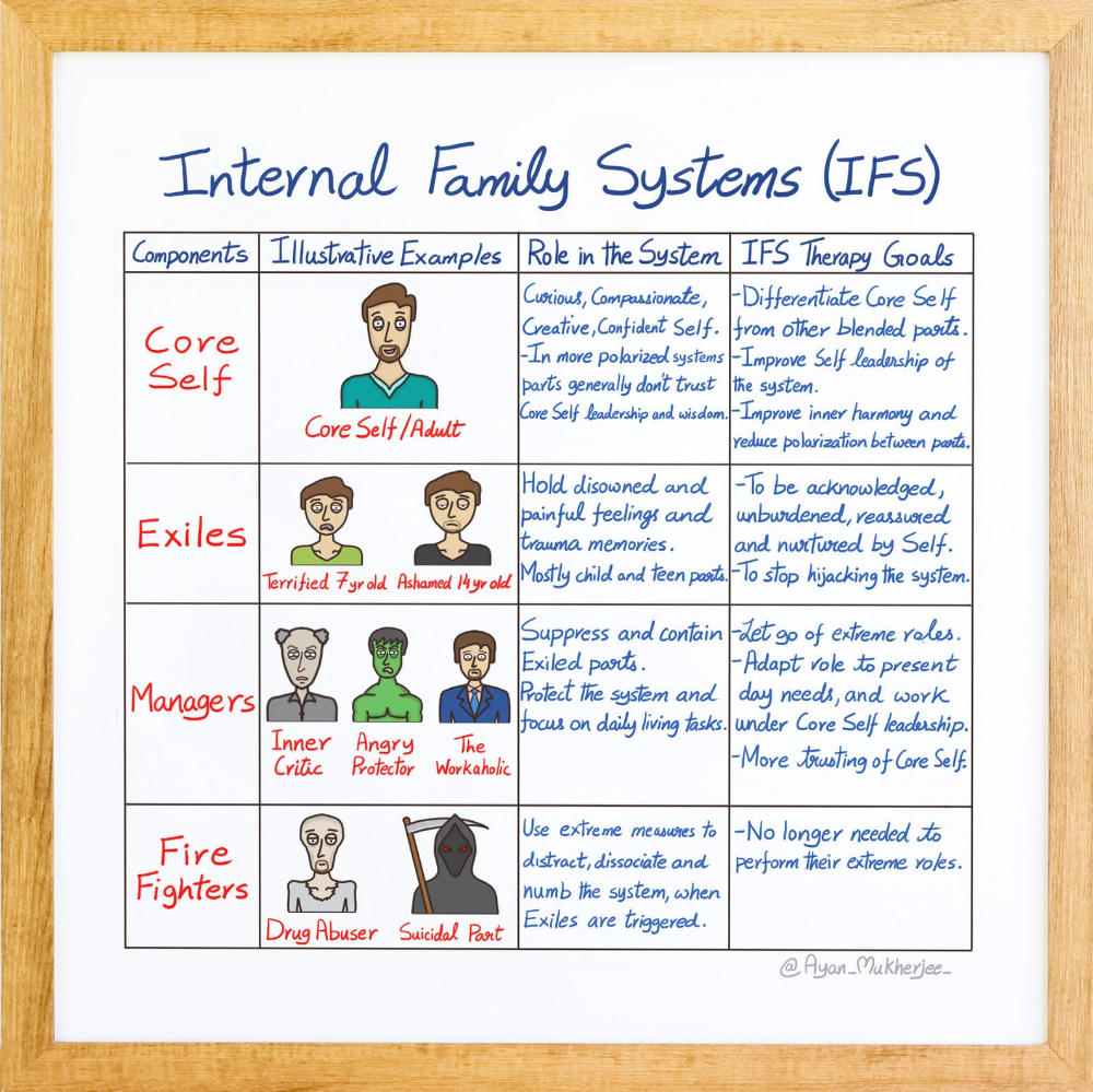 Internal Family Systems Therapy (IFS) is a type of therapy that focuses on the different parts of a person’s psyche and how they interact with each other. This approach believes that individuals have a core Self that is inherently good and whole, but can be obscured by protective parts that develop in response to past experiences.