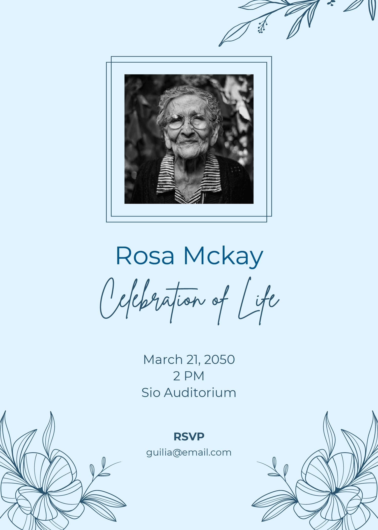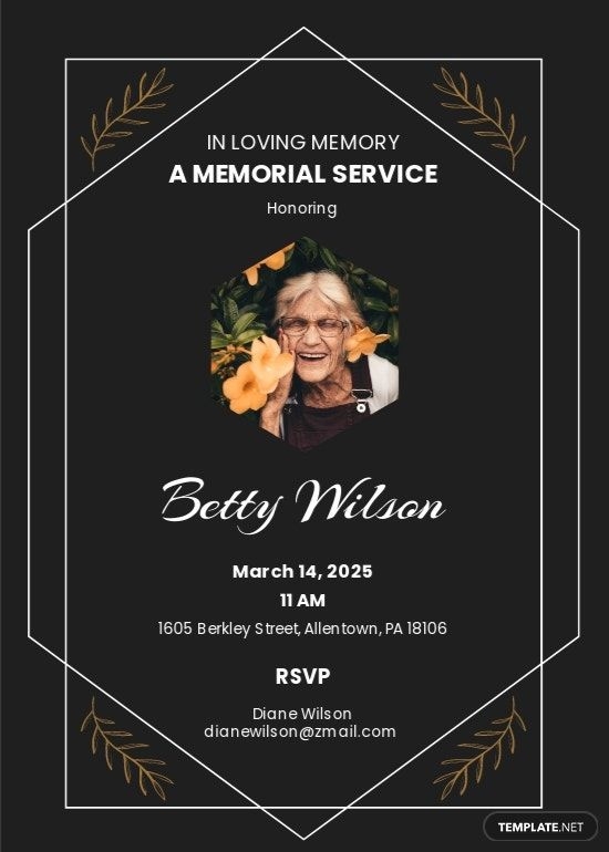 Below is a sample template for inviting guests to a memorial service: