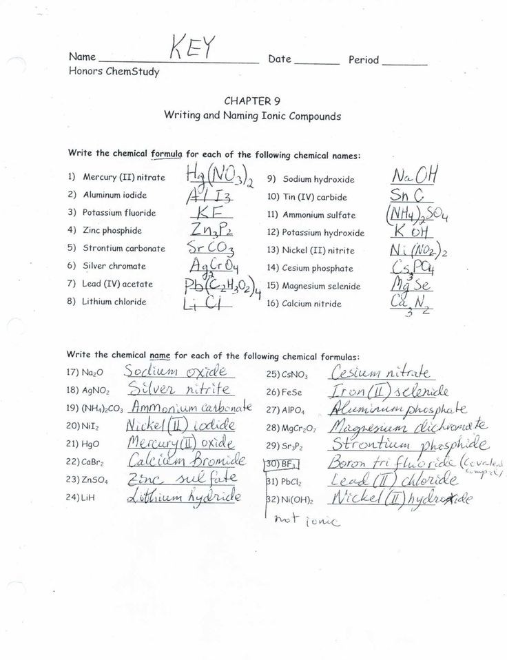 For example, if you have a worksheet that lists the cation “Na+” and the anion “Cl-“, you would write the formula for sodium chloride as NaCl. This is because sodium has a +1 charge and chloride has a -1 charge, so they combine in a 1:1 ratio to create a neutral compound.
