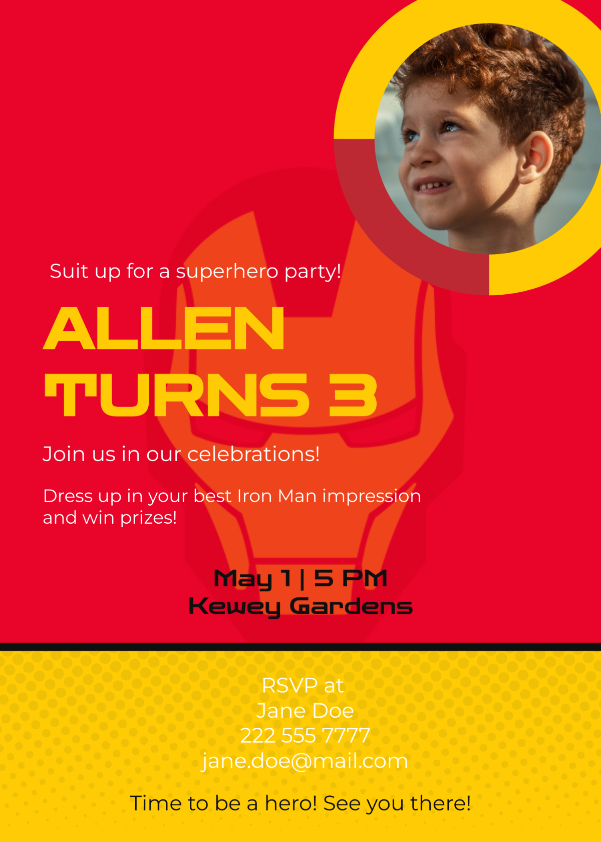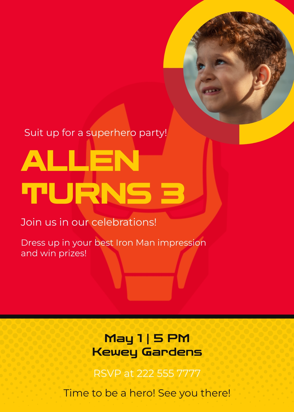 So why wait? Download our Iron Man birthday invitation template today and start planning the ultimate superhero birthday party for your little one. Get ready for a day filled with action, adventure, and lots of fun!