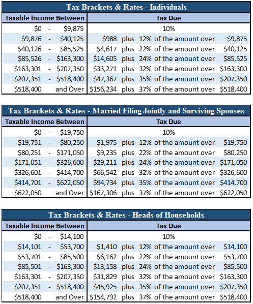 2020 IRS Releases Including Tax Rate Tables And Deduction Amounts