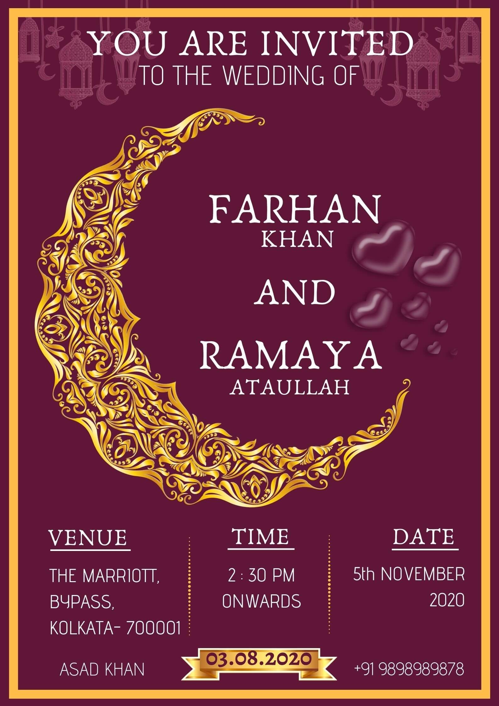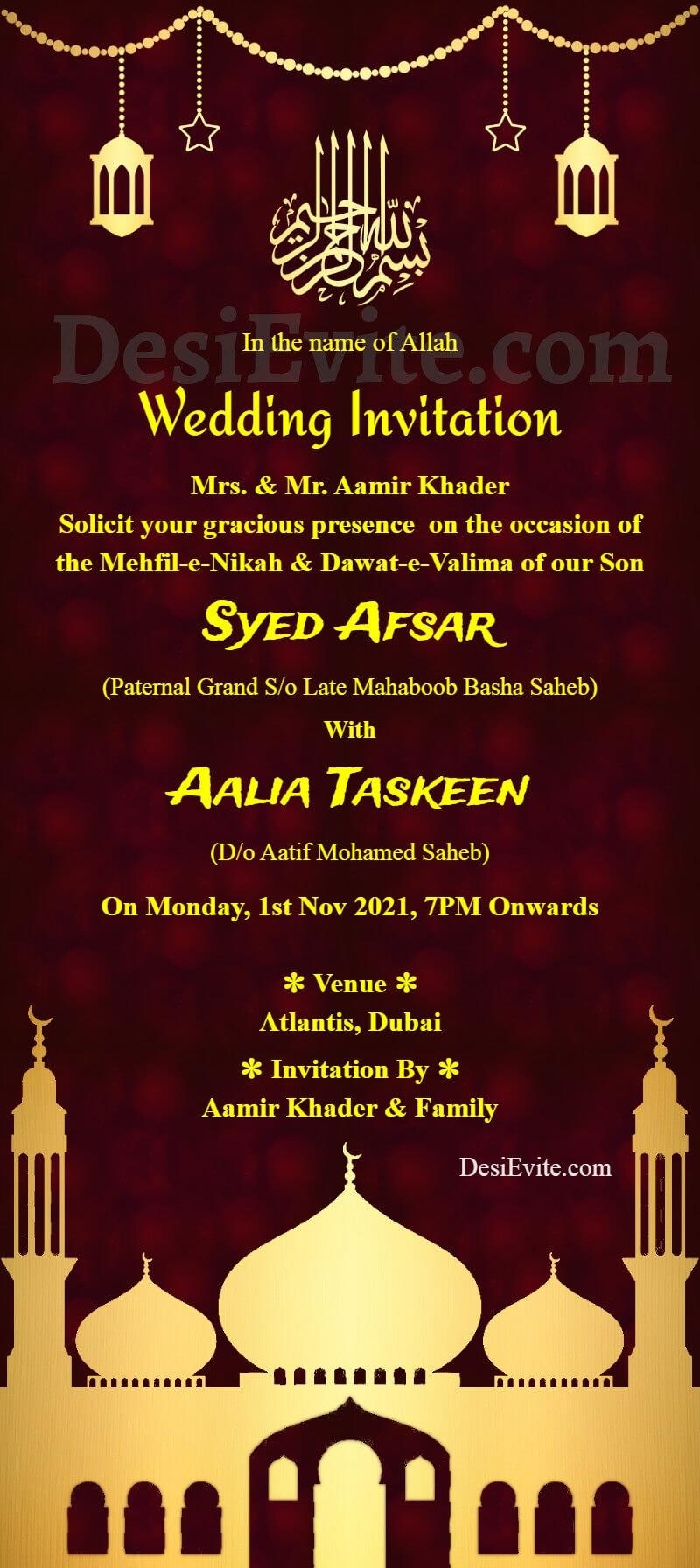 For a more elaborate look, you can opt for a template that incorporates intricate Islamic patterns and motifs, such as arabesque designs or geometric shapes inspired by Islamic architecture. These templates are perfect for formal events and can lend an air of sophistication to your invitation.