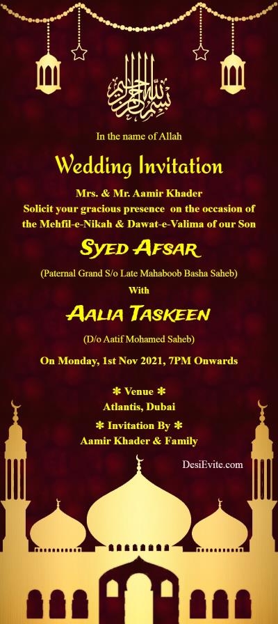 Choosing the right Islamic wedding invitation card template is crucial in ensuring that the card captures the essence of the couple’s love and their faith. From elegant calligraphy to intricate designs, there are numerous options available that cater to different preferences and styles. Whether it’s a traditional design or a modern twist, the invitation card should embody the couple’s personalities and showcase their commitment to each other.