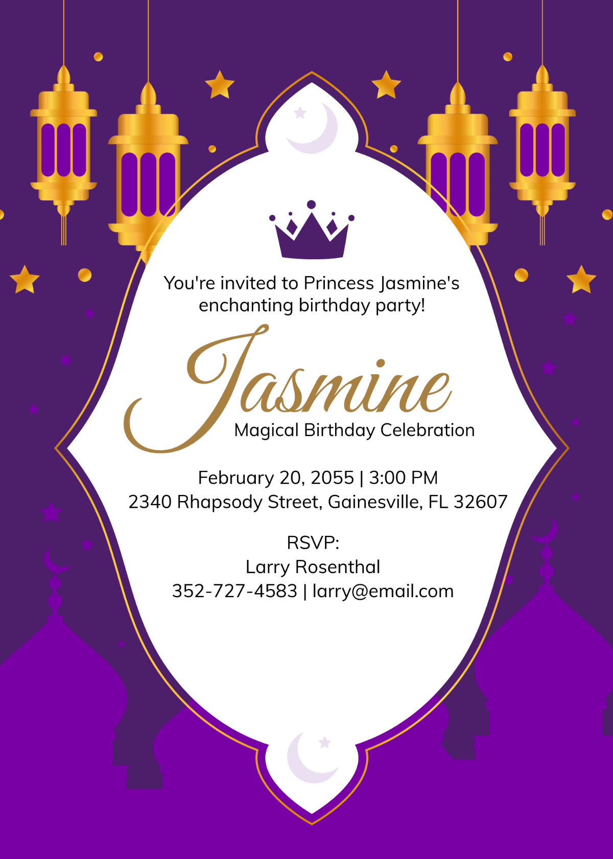 Free Princess Jasmine Birthday Invitation Template To Edit Online
