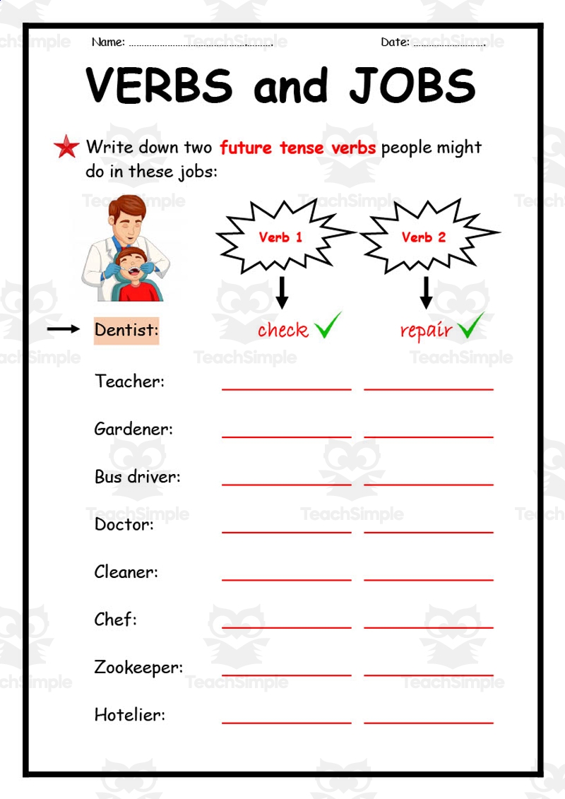 Verbs And Jobs Worksheet By Teach Simple
