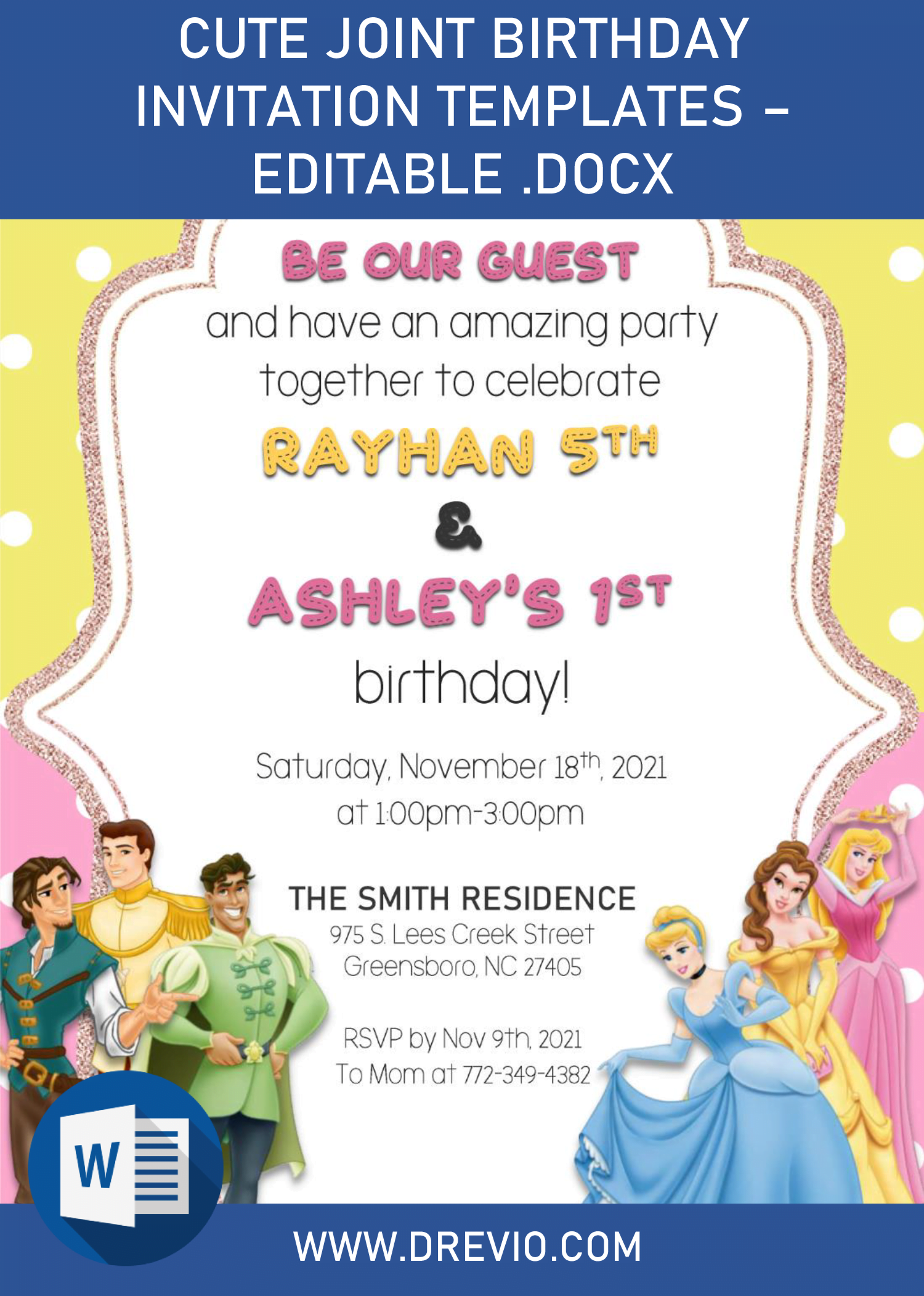 Cute Joint Birthday Invitation Templates Editable Docx Download